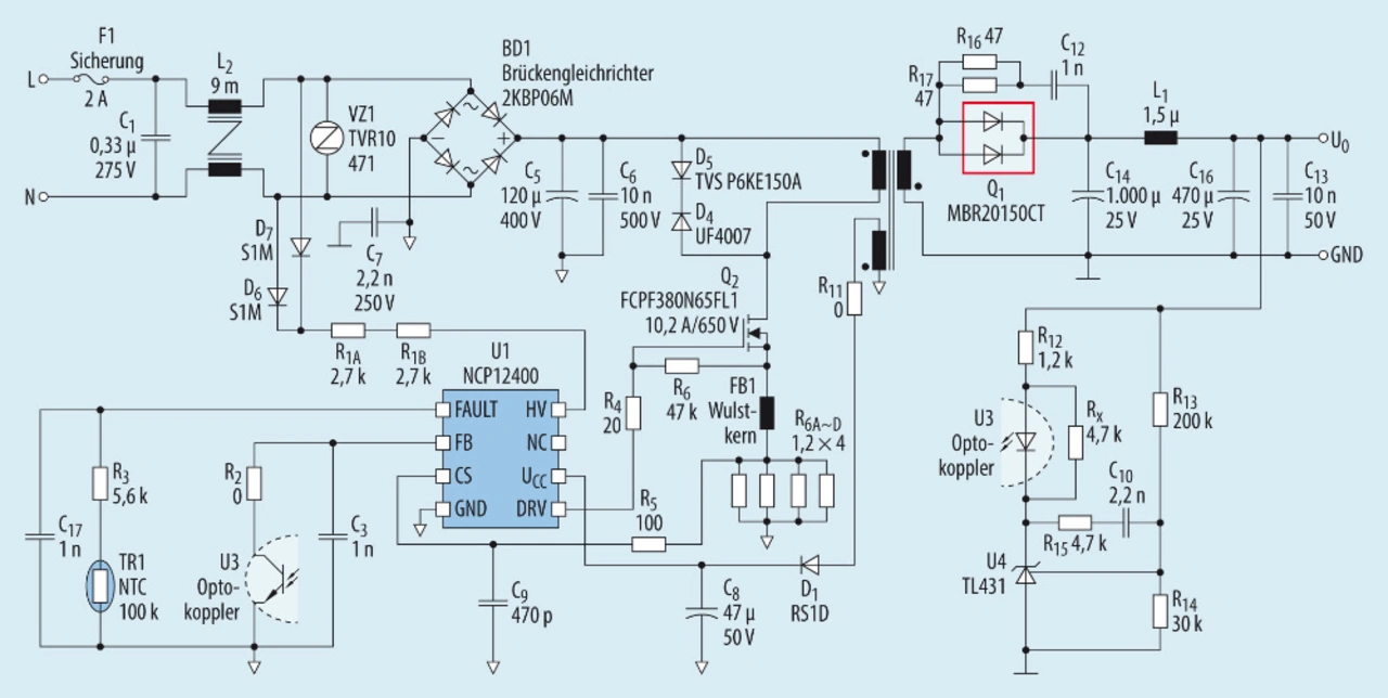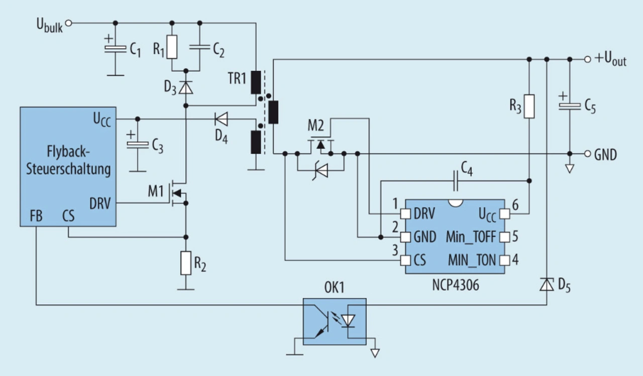 Für einen höheren Wirkungsgrad und mehr Leistungsfähigkeit – wenn also eine höhere Ausgangsleistung erforderlich ist – kommt meist eine sekundärseitig geregelte (Secondary Side Regulation, SSR) quasi-resonante (QR) Flyback-Topologie in Frage.