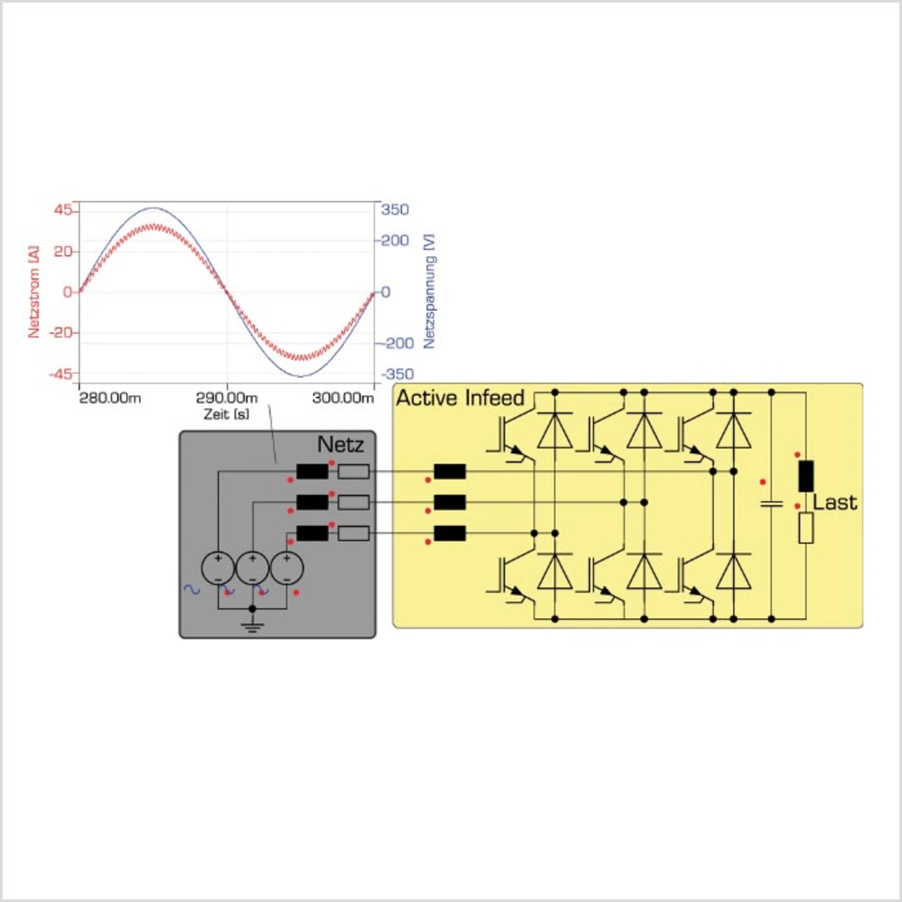 Die »Active Infeed Converter « (AIC) enthalten IGBT-gesteuerte Gleichrichter nach Bild 2, mit denen eine aktive Leistungsfaktorkorrektur möglich ist, so dass sie von Natur aus keine niederfrequenten Stromoberschwingungen erzeugen. Sie laufen teilweise auch unter dem Begriff »Active Front End«. Die Vorteile der AIC sind: