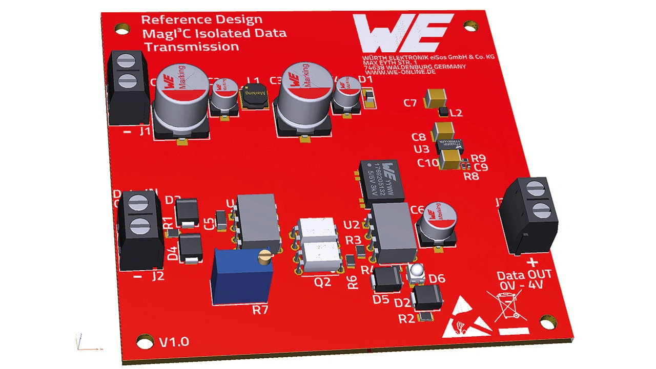 Es ist darauf zu achten, dass das FIMM-Modul zwei voneinander getrennte Masseanschlüsse hat: Die Pins 1 und 2 für die Primärseite und die Pins 3 und 4 für die Sekundärseite. Layout-technisch muss dafür gesorgt werden, dass die Primär- und Sekundärseite kapazitiv voneinander entkoppelt sind. Detailliertere Information zum Layout sind im Datenblatt des FIMM [2] Im Abschnitt »DESIGN EXAMPLE« zu finden. Eine Layout-Empfehlung für ALTIUM kann im Online Katalog [2] in dem Bereich »DOWNLOADS« heruntergeladen werden.