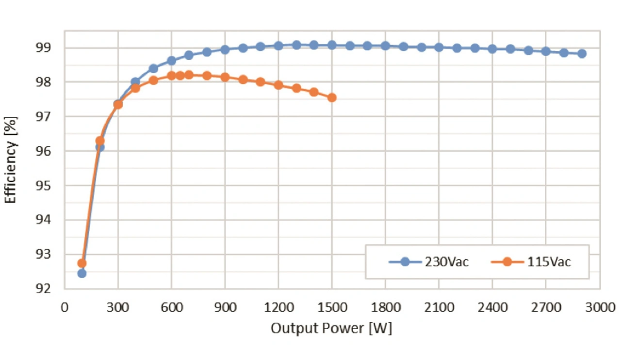 Es ist daher zu erwarten, dass eine Multilevel-Lösung gegenüber einem Interleaved-Design kostengleich oder sogar kostengünstiger ausfallen kann – ganz zu schweigen von der Verlustleistung. Diese halbieren sich im Vergleich zur Interleaved-Lösung, wenn der Wirkungsgrad der Stufe bei niedriger Netzspannung typischerweise von 95 Prozent auf 97,5 Prozent steigt.