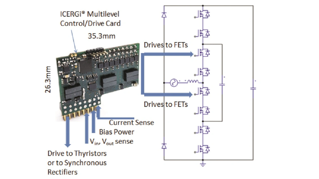 Icergi hat es sich zur Aufgabe gemacht, Multilevel-Lösungen für den Einsatz in volumenstarken Netzteilanwendungen praxisgerecht und kosteneffizient zu gestalten. Dazu stellt das Unternehmen fertige Lösungen etwa in Form einer 35 mm × 26 mm großen Aufsteckplatine zur Verfügung (Bild 7). Diese umfasst einen kostengünstigen Mikrocontroller vom Typ STM32F0 vom STMicroelectronics mit Arm Cortex-M0 sowie integrierte Regelungs- und Treiberelemente, um die Leistungs-MOSFETs direkt anzusteuern.