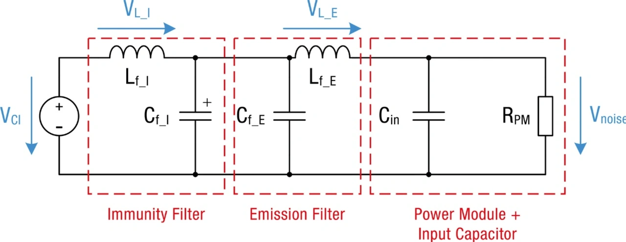 Das Filter mit Transientenschutz ermöglicht einen effizienten Schutz des DC/DC-Wandlermoduls und bewirkt gleichzeitig eine Dämpfung der hochfrequenten Emissionen.