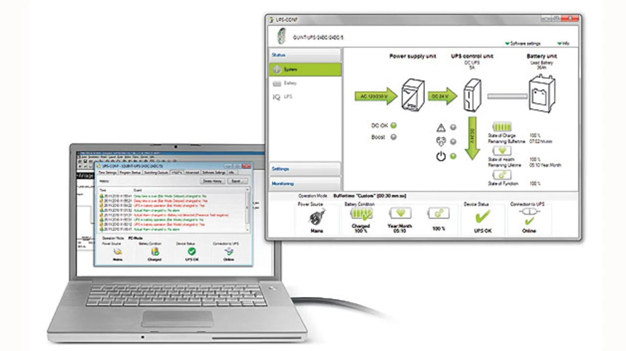 Eine durchgängige Spannungsversorgung im Schaltschrank mit 12 oder 24 V(DC) ist Voraussetzung für die hohe Verfügbarkeit von Anlagen und Prozessen. Durch die Konfigurations- und Management-Software von Phoenix Contact kann das USV-System übersichtlich überwacht und das Verhalten der Module individuell angepasst werden.