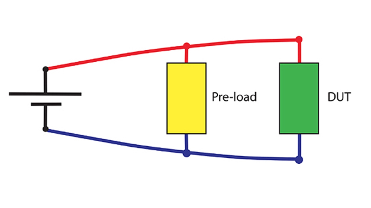 Eine geeignete Möglichkeit, das Ausmaß der Über- und Unterschwinger zu begrenzen, ist die Verwendung einer Vorlast, die parallel zum Prüfling geschaltet wird und dafür sorgt, dass die prozentuale Änderung des Ausgangsstroms kleiner ausfällt. Wenn der Ausgangsstrom je zu 50 % durch die Vorlast und den Prüfling fließt, hat eine Änderung der Stromaufnahme des Prüflings um 100 % nur eine Änderung von 50 % am Ausgangsstrom des Netzteils zur Folge. Hiermit wird das Netzteil wesentlich leichter fertig, sodass das Risiko großer Spannungs-Überschwinger deutlich sinkt. Als Vorlast kann eine einfache ohmsche Last verwendet werden, wobei es überhaupt nicht darauf ankommt, ob 40, 50 oder 60 % des gesamten Strombedarfs auf die Vorlast entfallen.