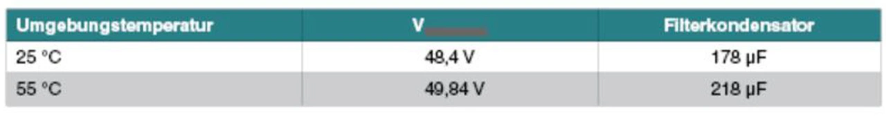 Der Einfluss der Temperatur auf VClamp,max und damit auf den Wert des Filterkondensators ist in der Tabelle dargestellt.