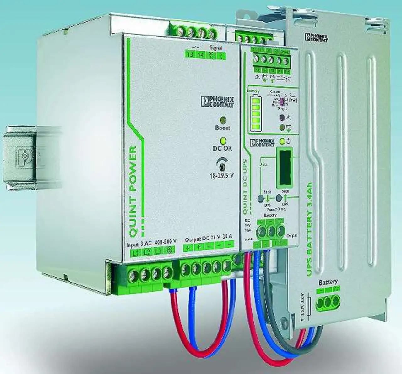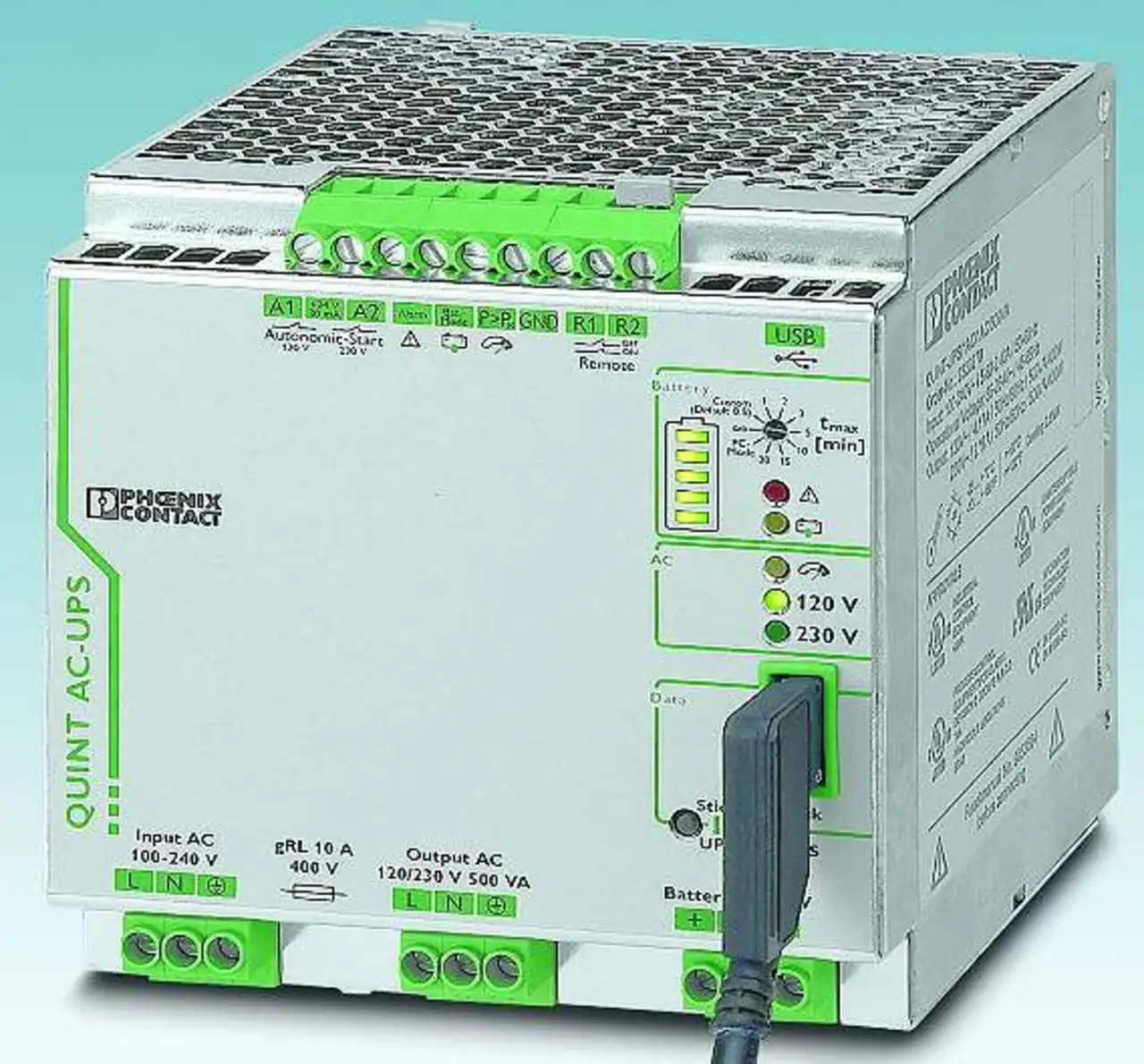 Die »intelligente« Stromversorgung »Quint UPS-IQ« von Phoenix Contact ermittelt deshalb alle relevanten Zustände der Batterie. So sorgt sie für Transparenz, um die Stabilität der Versorgung jederzeit sowie unter optimaler Ausnutzung der Batterie sicherzustellen. Das »intelligente« Batterie-Management kennt den aktuellen Ladezustand der angeschlossenen Batterie und errechnet daraus die zur Verfügung stehende Restlaufzeit. Dementsprechend werden Versorgungslücken der angebundenen Teilnehmer sowie das frühzeitige Herunterfahren von Industrie-PCs vermieden. Im Beispiel der Abfüllanlage erhält der Betreiber von der USV Quint UPS-IQ eine Information, ob die Pufferzeit tatsächlich noch zwanzig oder unter Umständen lediglich fünfzehn Minuten beträgt.