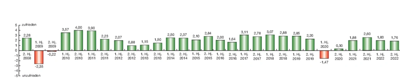 »Der Bauch meint 0, das Herz meint 3 und der Kopf meint +1,5. Ich denke, das sagt alles über die derzeitige Gefühlslage am Markt aus«, meinte einer der Befragten anlässlich der traditionellen Abfrage des Stimmungs-Index in der deutschen Stromversorgungsbranche. Erwies sich die Stimmung im 2. Halbjahr 2021 dann doch im Nachgang mit 2,6 deutlich besser als prognostiziert (1,88), ist die Stimmung aktuell mit 1,83 Punkten deutlich unter den im Herbst letzten Jahres erwarteten 2,11 Punkten geblieben. Es dürfte wohl auch dem Überfall Russlands auf die Ukraine geschuldet sein, dass sich die Stimmung für die zweite Jahreshälfte 2022 aktuell bei 1,76 Index-Punkten bewegt.