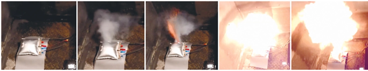 Lithium-Ionen-Akkus sind gefährlich: Immer wieder geraten Zellen plötzlich in Brand. Im Bereich der Energiespeicher ist das ein neues Phänomen, denn im Gegensatz zu den »klassischen« Batterie-Typen mit Elektrolyten auf Wasserbasis verwenden sie organische Lösungsmittel – sprich Kohlenwasserstoffe –, die fast so entzündlich sind wie Benzin. Der wohl berühmtesten Fall waren die explodierenden Akkus des Samsung Smartphones »Galaxy Note 7«. Innerhalb weniger Tage fiel der Börsenwert des Konzerns um 22 Milliarden US-Dollar und unzählige Geräte mussten zurückgerufen werden. Auch Elektroautos von Tesla und anderen Anbietern sowie E-Bikes sind schon in Flammen aufgegangen. Doch nicht nur Akkus sind betroffen, auch die nicht wieder aufladbaren Primärzellen können in Brand geraten.