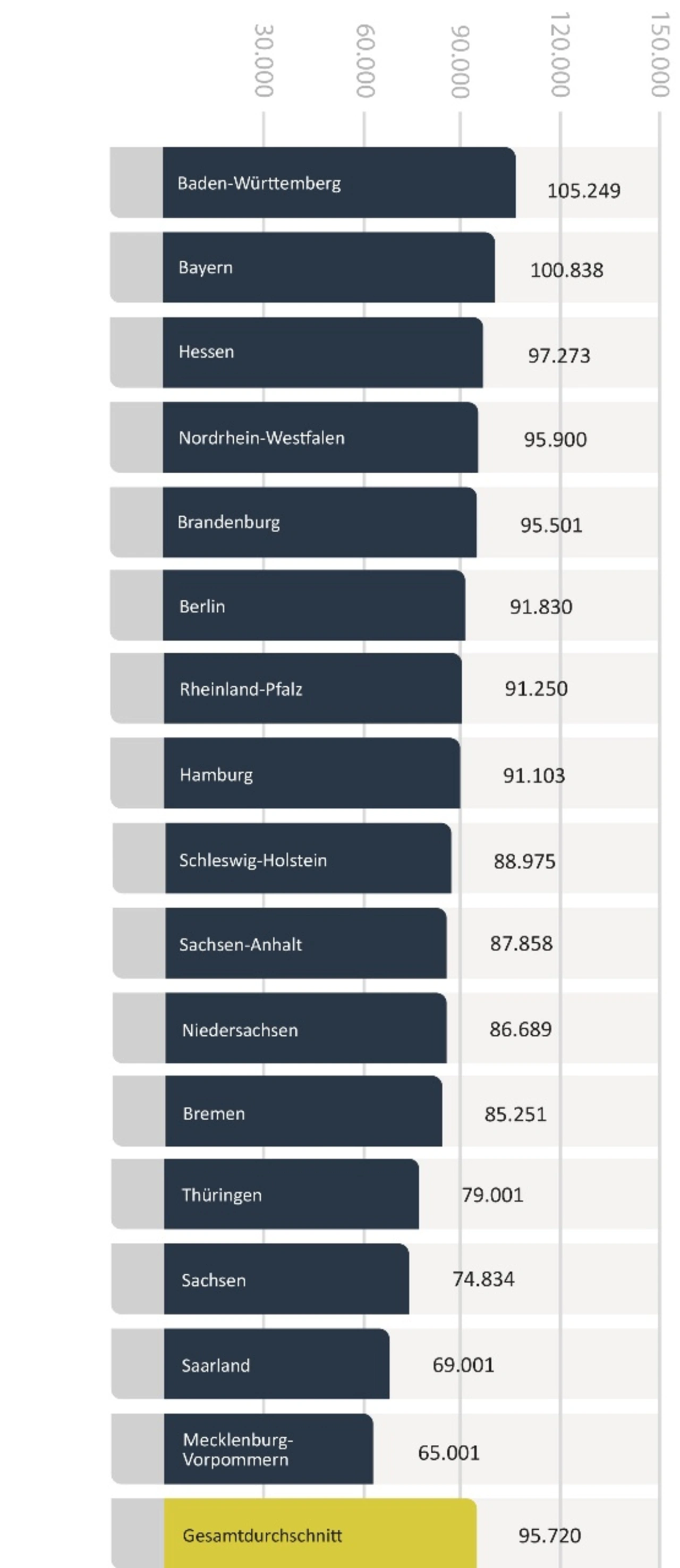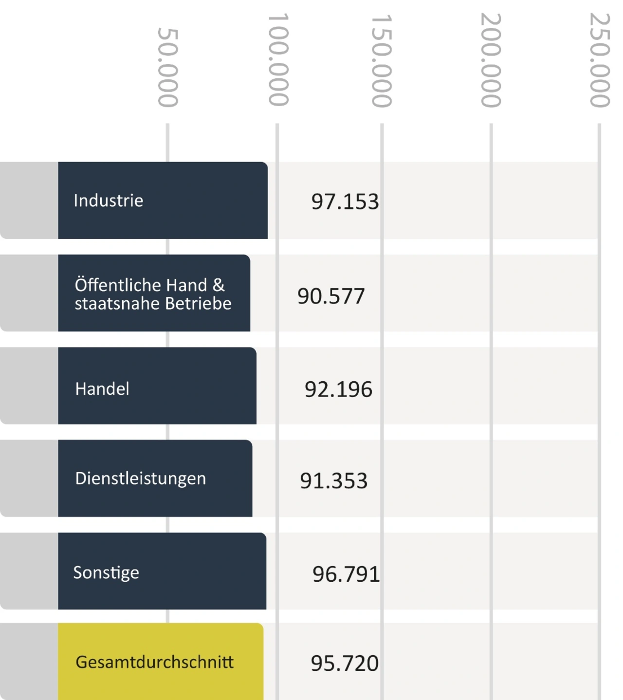Einkaufsfachkräfte in der Industrie erzielen mit durchschnittlich 97.000 Euro das höchste Jahreseinkommen. In der IT- und Telekommunikationsbranche sind es sogar 112.000 Euro. Deutlich niedriger liegen die Gehälter im Baugewerbe mit 74.000 Euro. Auch in der öffentlichen Verwaltung zeigen sich Differenzen: Während in Infrastrukturbetrieben bis zu 104.000 Euro gezahlt werden, liegt das Durchschnittsgehalt bei Behörden nur bei 80.000 Euro.