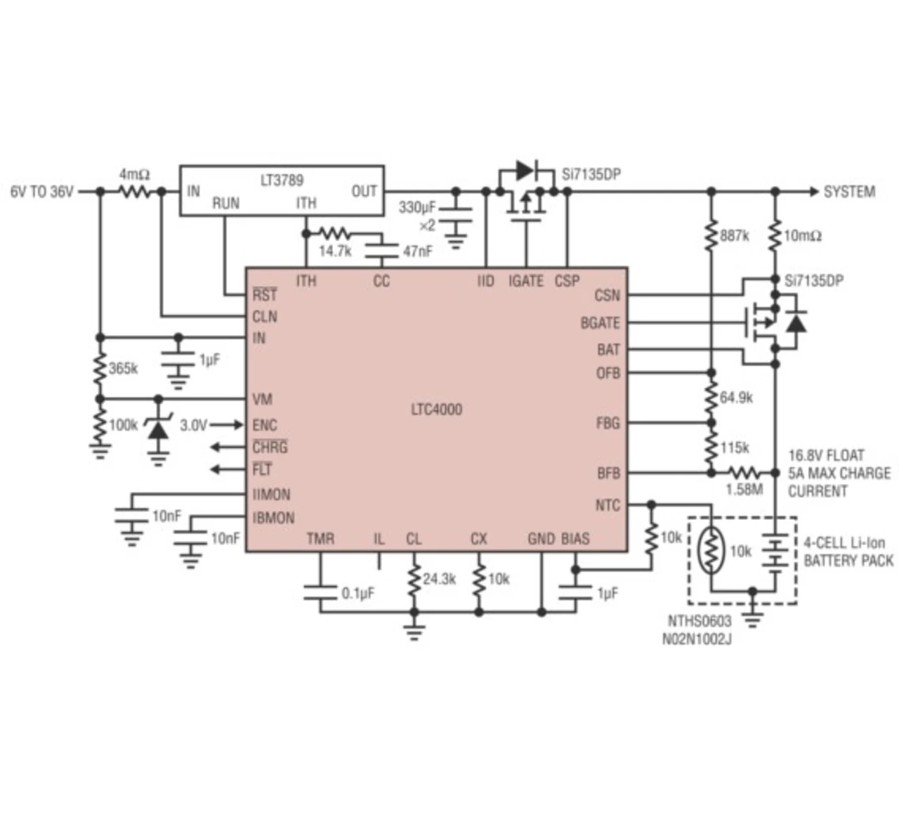 Der vollständige Batterieladekontroller des LTC4000 lädt eine Vielzahl von Batterien mit unterschiedlichen chemischen Zusammensetzungen, einschließlich Lithium-Ionen/Polymer/Phosphat, gekapselte Bleisäure (SLA) und Nickel. Der Batterieladebaustein enthält ebenfalls eine genaue Strommessung, die mit einer geringeren Messspannung in Hochstromapplikationen auskommt. Der LTC4000 schafft so ein leistungsstarkes Ladesystem aus praktisch jeder Eingangsquelle mit einer bisher unerreichten Leistungsfähigkeit und Flexibilität.