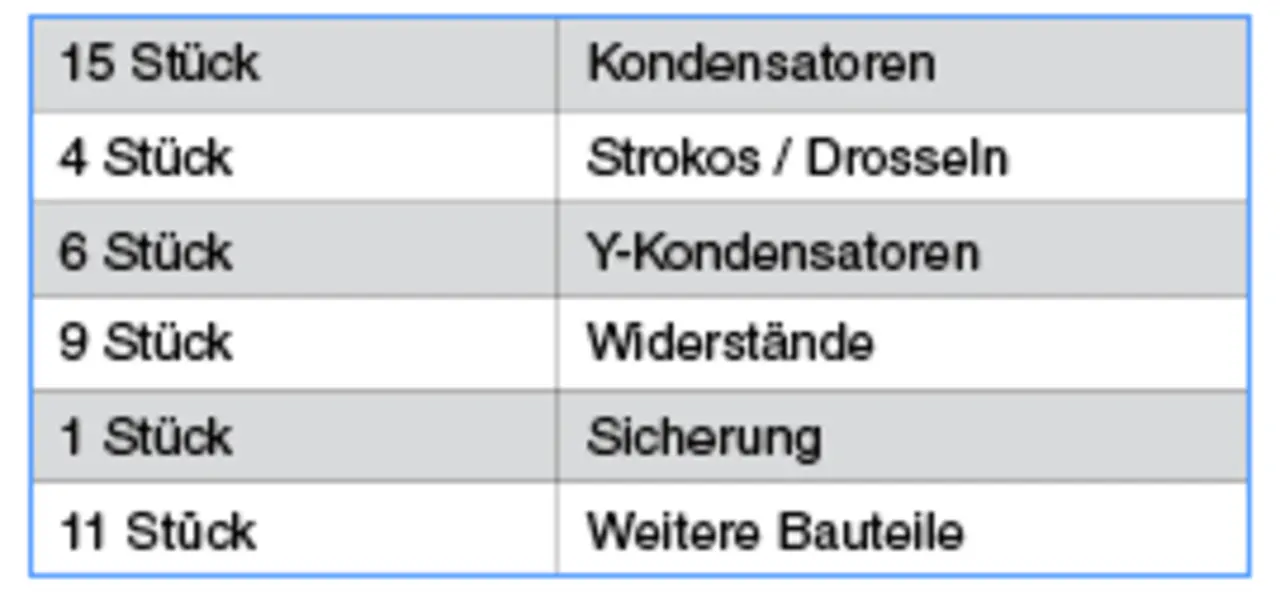 Wie im Schaltungsbeispiel für das AER50-W in Bild 3 zu sehen ist, sind Kondensatoren in den Eingangsleitungen notwendig zum Schutz gegen Surge und Burst. Neben stromkompensierten Drosseln und weiteren Kondensatoren im kompletten Schaltkreis sind weitere Kapazitäten für die Netzausfallüberbrückung im Einsatz. Je nach Bedarf oder Anforderung sollten die Einschaltströme begrenzt oder ein Verpolschutz realisiert werden. Spätestens hier ist ersichtlich, dass neben gutem Know-how der Entwickler auch einiges an Material (Tabelle 2) investiert werden muss, um den DC/DC-Wandler bahntauglich zu machen. Und es wird komplexer zu überschauen, wie viel die fertig eindesignte PSU am Ende kosten wird.