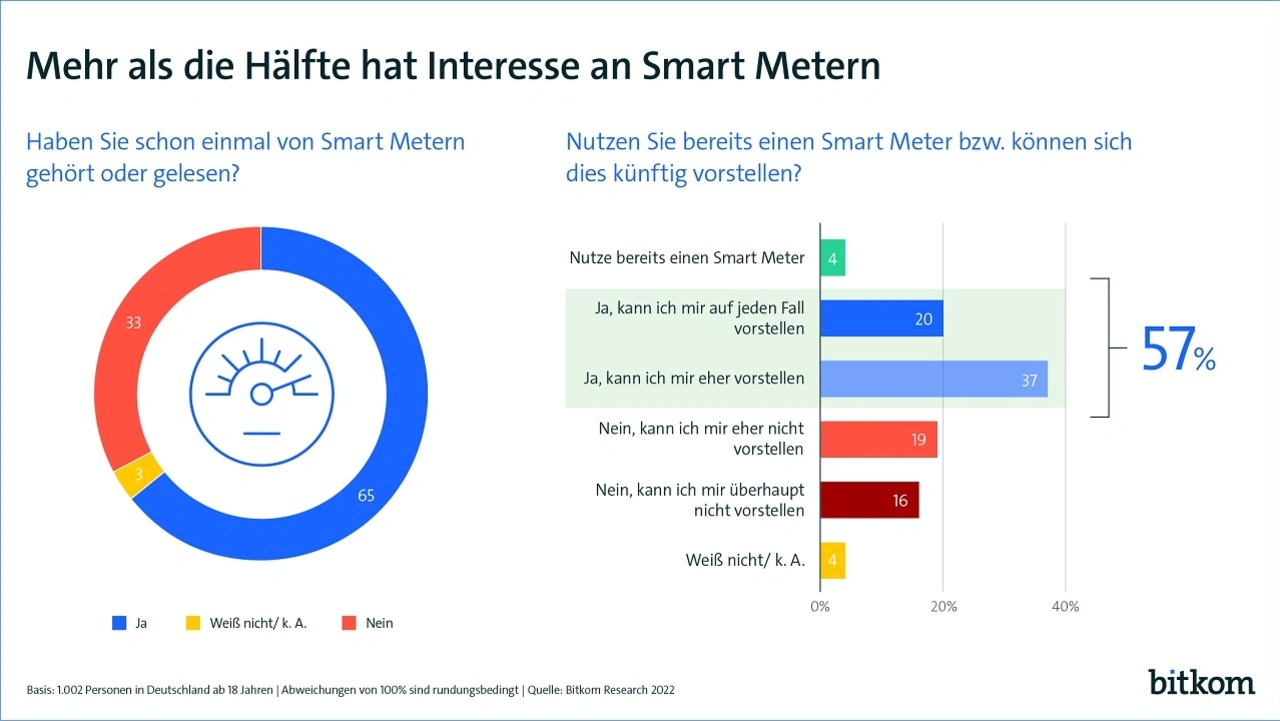 Zu Beginn der Markteinführung der Smart Meter im Januar 2020 hatten sich erst 36 Prozent der Menschen in Deutschland offen gegenüber dieser Technologie gezeigt. Ihr Einbau ist aktuell für Haushalte mit einem hohen Stromverbrauch von mehr als 6000 kWh/Jahr vorgeschrieben. Auch der Bekanntheitsgrad von Smart Metern ist in den vergangenen zwei Jahren gestiegen: 33 Prozent haben noch nie davon gehört oder gelesen.