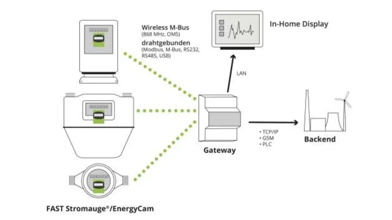 Die handflächengroße EnergyCam von FAST FORWARD macht herkömmliche Strom-, Gas- und Wasserzähler zu intelligenten Zählern. Sie erfasst die Zählerstände optisch, digitalisiert den Wert und übermittelt ihn drahtlos oder per Kabel an ein beliebiges Gateway.