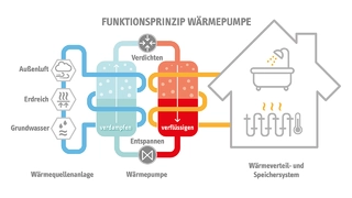 Die Funktionsweise einer Wärmepumpe lässt sich in vier Hauptphasen unterteilen: