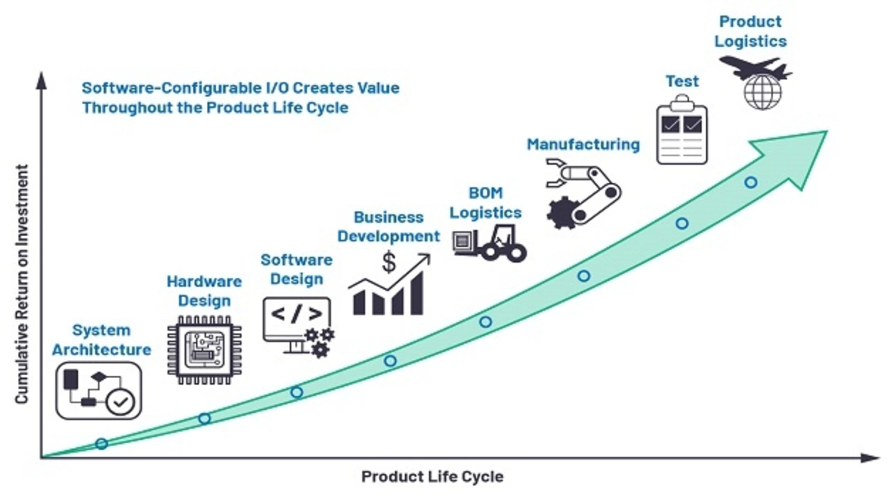 Aus Sicht der Geschäftsentwicklung birgt die träge Reaktionsfähigkeit einer konventionellen Entwicklungsstrategie unnötige Risiken für verpasste Marktchancen oder überschrittene Liefertermine. Die Flexibilität und Einfachheit der integrierten, konfigurierbaren I/O-Strukturen dagegen hilft, die Rendite zu maximieren und die Markteinführungs- und Renditezeiten so kurz wie möglich zu halten.