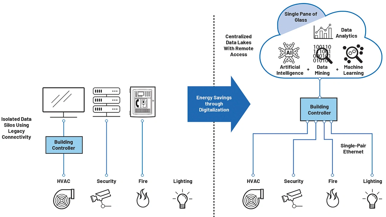 Da heute 30 Prozent des weltweiten Energieverbrauchs auf Gebäude entfallen, besteht die Sorge, dass die Emissionsziele nicht erreicht werden können, wenn die Branche keine konkreten Maßnahmen zur Digitalisierung der Systeme und zur Einführung der Automatisierung ergreift. Erschwerend kommt hinzu, dass für eine wirksame Automatisierung mehr Datenerfassung in Echtzeit erforderlich ist, und zwar in einem Umfang, der die derzeitige Durchsatzkapazität und Reaktionsfähigkeit der alten RS-485-basierten Infrastruktur übersteigt.