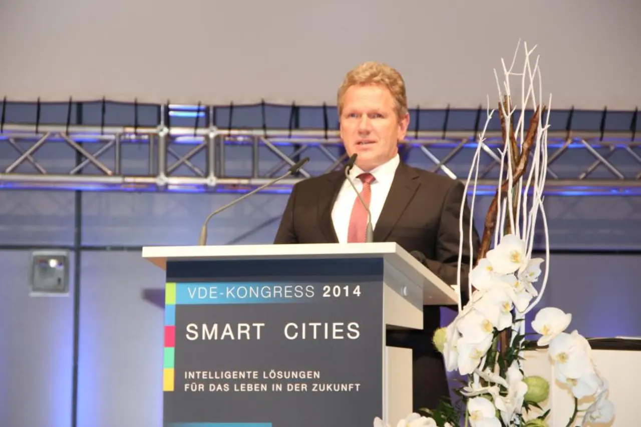 Auch wenn das Thema der VDE-Konferenz in diesem Jahr »Smart Cities« lautete, so wäre es doch eine glatte Themaverfehlung gewesen, ausschließlich über Smart Cities zu sprechen. Das Drumherum, die Umgebung der Städte, die Regionen sind genau so wichtig – worauf alle Keynote-Speaker in Frankfurt hingewiesen haben. »Der Blick auf die Umgebung lohnt sich«, erklärte Dr. Peter Terwiesch, Vorstandsvorsitzender der ABB AG und Leiter der Region Zentraleuropa in seiner Keynote-Rede. »Im Zusammenspiel von Stadt und Land müssen wir unsere Zukunftsfähigkeit sicherstellen.« Ganz Deutschland sei ja im Zeichen der Energiewende zu einem Labor geworden. Einen großen Teil dieses Labors nehmen die Verteilnetze ein und hier wiederum sind die Städte wichtige Elemente für das Lastmanagement. Das E-Energy-Projekt MeRegio habe hier einige Erfahrungen gebracht, etwa mit regelbaren Ortsnetztrafos.