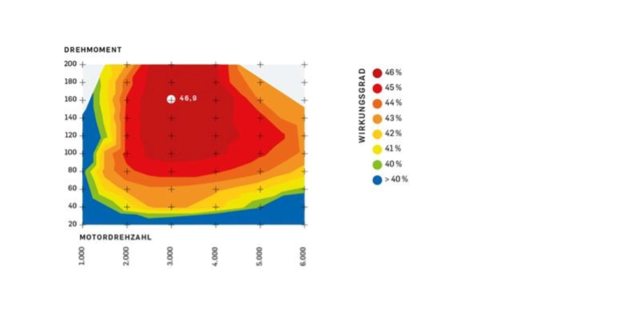 In einem hybridisierten Mittelklassefahrzeug werden mit dem im Rahmen des Forschungsprojekts entwickelten Effizienzmotor bereits 42 Prozent der im Kraftstoff gebundenen Energie genutzt. Weitere Untersuchungen zeigten, dass der Gesamtwirkungsgrad durch den Einsatz neuer Kraftstoffe – etwa regenerativ hergestellten Methanols – auf 46 Prozent gesteigert werden kann. Zum Abschluss des Projekts haben die Forscher die Potenziale eines mageren Motorbetriebs – also mit hohem Luftüberschuss – untersucht. Dabei zeigte sich, dass in weiten Kennfeldbereichen der Motorwirkungsgrad um zwei bis drei Prozentpunkte gesteigert werden kann. „Damit rückt ein Wirkungsgrad von 50 Prozent in greifbare Nähe“, sagt Prof. Dr.-Ing. Michael Bargende, Inhaber des Lehrstuhls Fahrzeugantriebe am Institut für Fahrzeugtechnik der Universität Stuttgart.