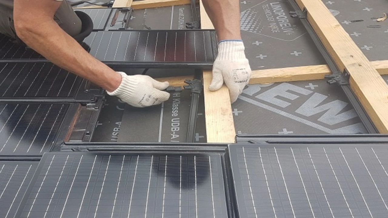 Der Dachdecker übernimmt das Verlegen der Kabelbäume an der Dachlattung und deckt dann die neuen Solardachziegel gegebenenfalls im Verbund mit den übrigen Dachziegeln ein. Die Elektroarbeiten erfolgen unabhängig von den Montagearbeiten auf dem Dach.