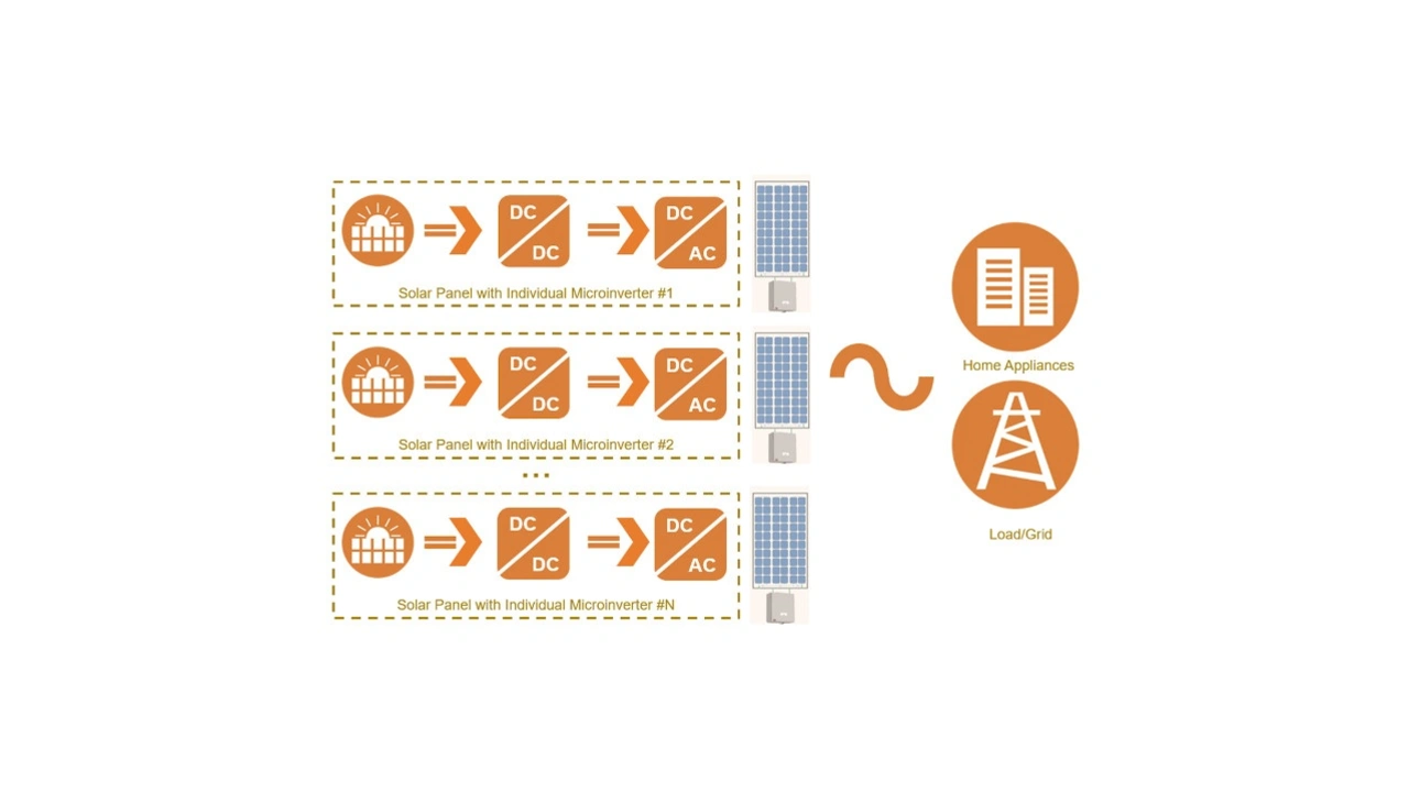 Eine Solaranlage mit String-Wechselrichter hingegen kombiniert die Eingänge mehrerer in Reihe geschalteter Solarmodule und liefert Hunderte von Volt. Der Anschluss mehrerer Solarmodule kann jedoch weniger effizient sein als ein System mit Mikro-Wechselrichter. Erhält zum Beispiel ein Modul weniger Licht als die anderen in der Reihe, wirkt sich dies auf die gesamte Systemleistung aus. String-Wechselrichtersysteme sind kostengünstiger als Anlagen mit Mikro-Wechselrichter, bei denen für jedes Modul ein Wechselrichter erforderlich ist.