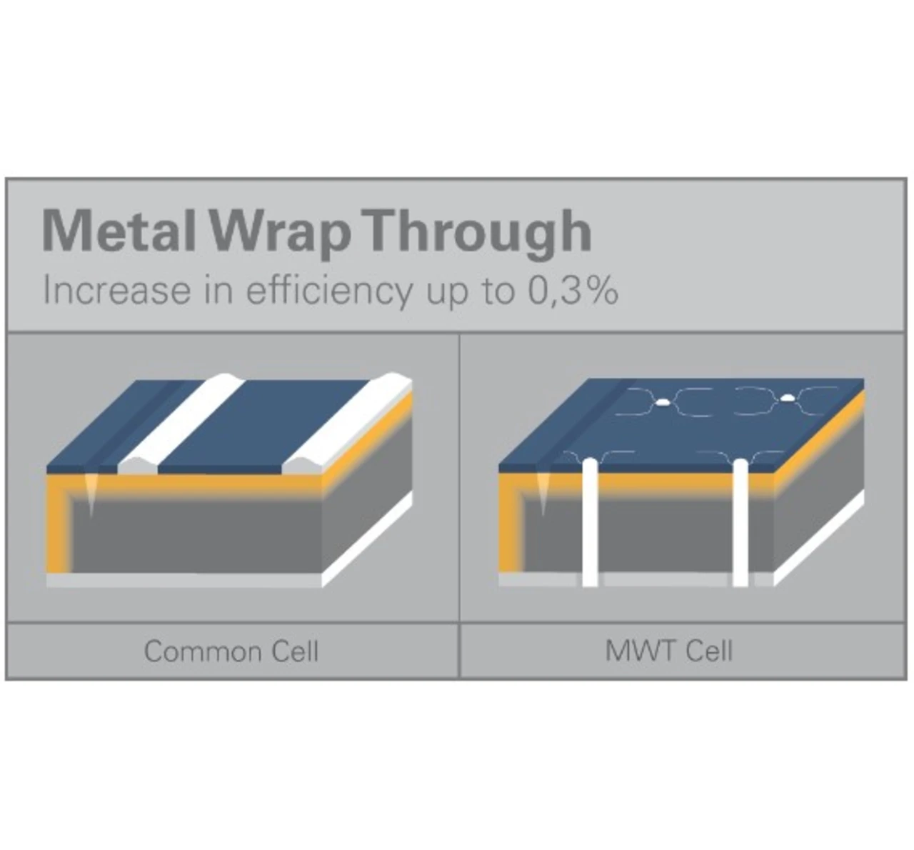 Eine gängige Methode, um den Wirkungsgrad zu erhöhen, besteht darin, die Vorderseitenkontaktflächen zu reduzieren, um die Abschattung des einfallenden Sonnenlichts zu reduzieren. Bei dieser »Metal Wrap Through« kurz MWT-Technologie, werden die Vorderseitenkontakte zum Teil auf die Rückseite verlegt. »Das reduziert die Vorderseiten-Metallisierungsflächen um fast die Hälfte und steigert damit den Wirkungsgrad um bis zu 0,3 Prozent«, so Wende.
