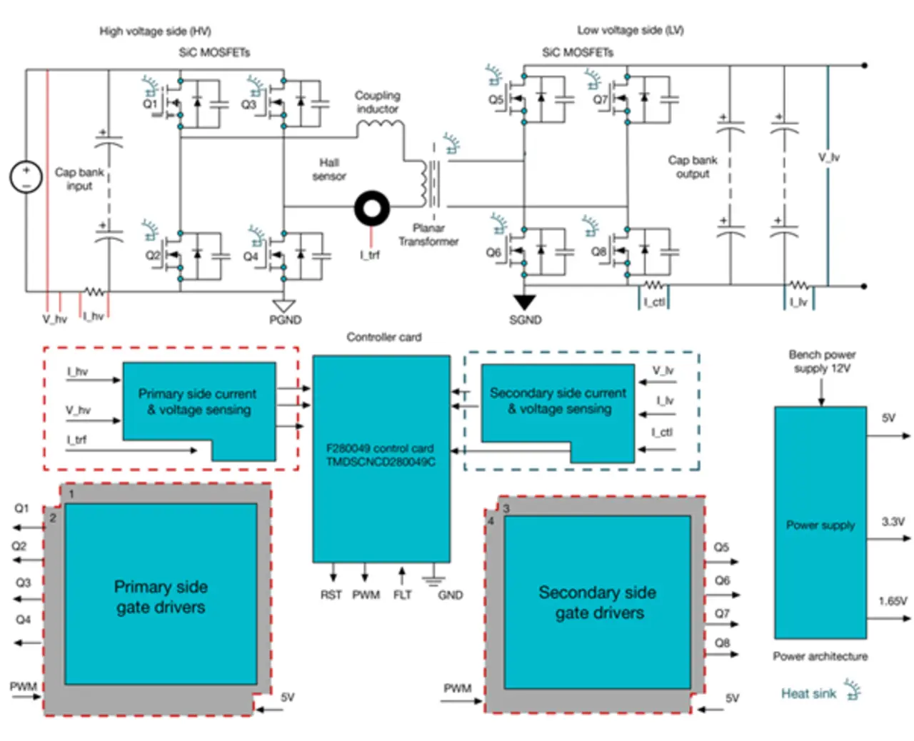 Neben den MCUs, die die Regelungs- und Überwachungsfunktionen übernehmen und damit bei der Integration eines ESS in übergreifende Systeme helfen, sorgen auch verlustarme und hocheffiziente Leistungsschalter für die Sicherheit und Robustheit von Energiespeicher-Systemen. Kompakte Leistungsschalter auf der Basis von Siliziumkarbid (SiC) und Galliumnitrid (GaN) tragen gemeinsam mit Echtzeitsteuerungs-MCUs dazu bei, bidirektionale Wandler so anpassungsfähig zu machen, dass sie mit unterschiedlichen DC-Energiespeichersystemen kombinierbar sind (Bild 2).