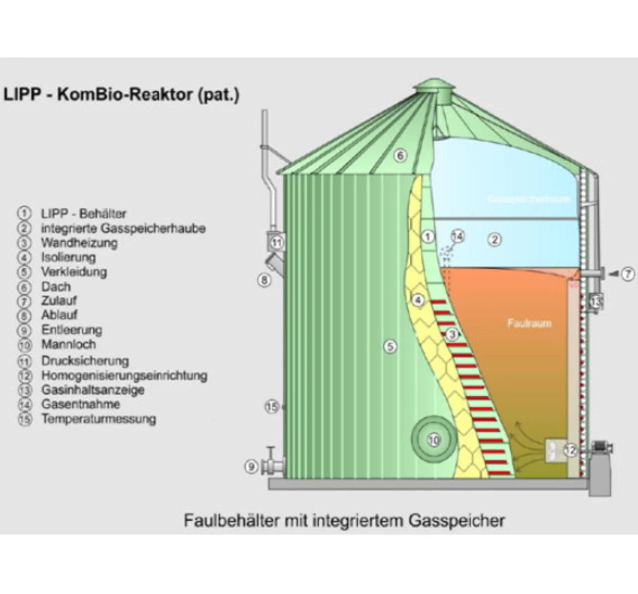Die Investitionskosten nehmen degressiv mit der Größe der Anlage zu. »Das heißt, kleinere Systeme sind bezogen auf einen Kubikmeter Fermentervolumen oder ein kW zur Verfügung gestellter Leistung teurer als große«, sagt Lipp. Um dies auszugleichen, ist der Anlagenbauer gefragt. Lipp hat hier ein angepasstes System entwickelt. »In ausschließlich mit Gülle betriebenen Anlagen ist die Eigenerwärmung des Substrates gering. Bei Fermentertypen mit großem Durchmesser und niedriger Höhe entstehen im Winter oft Probleme, die Temperatur von 40 °C zu halten, die für einen effektiven Betrieb notwendig ist«, erklärt Lipp. Deshalb sind die Behälter sehr schlank konstruiert - das heißt, das Verhältnis zwischen Durchmesser und Höhe ist so optimiert, dass der Oberflächendurchmesser so gering wie möglich ist. Denn je niedriger der Durchmesser ist, desto weniger Wärme kann über die Oberfläche des Substrates entweichen. »Bei zylindrischen Behältern ist bei vorgegebenem Volumen die Oberfläche des Behälters so klein wie möglich, wenn Durchmesser und Höhe ein Verhältnis von 1:1 haben«, sagt Lipp. So wird ein drastischer Temperaturabfall vermindert. Zudem wird die Fläche, über die Wärme verloren gehen kann, möglichst gering gehalten.