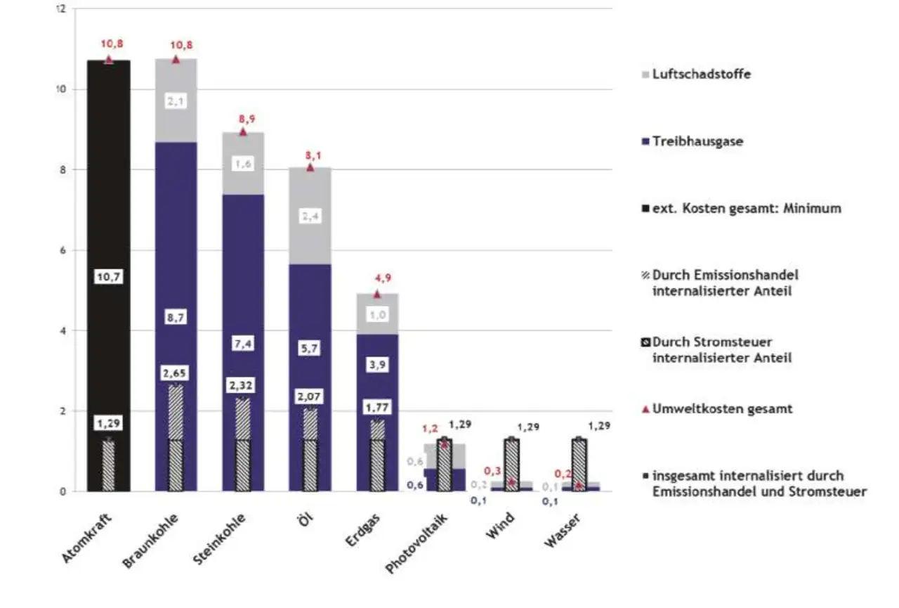 Weiter muss man beachten, dass in den Stromgestehungskosten nicht unbedingt alle Kosten enthalten sind, die der Gesellschaft durch die Stromerzeugung entstehen. Wenn man die positiven Effekte der Energiewende einpreisen will, muss man mit einbeziehen, welche Kosten etwa durch CO2-Emissionen entstehen.