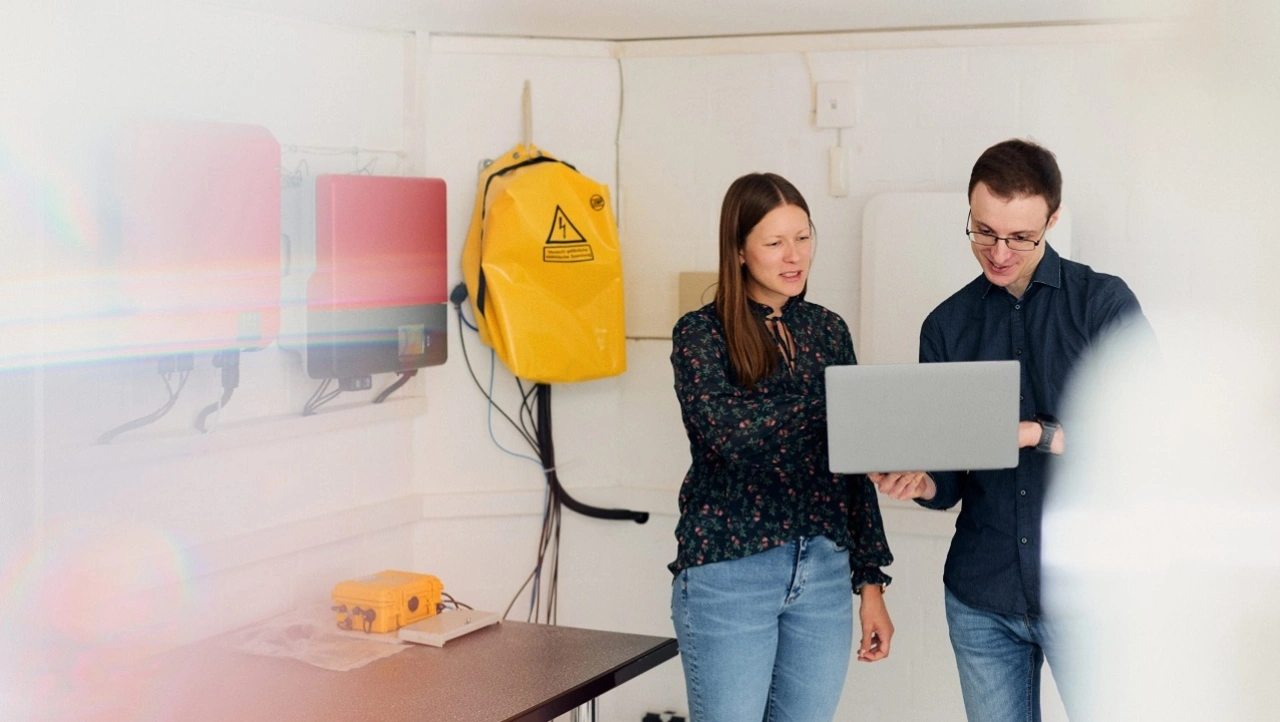 Während Ulf Brandmeier am Rechner die Stromerzeugung seiner PV-Anlage überprüft, lesen Katrin Schulte und Timon Jungh aus den gesammelten Daten des Feldtests noch etwas anderes: »Unser Ansatz wirkt, wir konnten die prinzipielle Funktionalität nachweisen«, so Schulte zufrieden. »Mit Hilfe verteilter KI lässt sich eine netzdienliche Steuerung der Batterieladung erreichen.«
