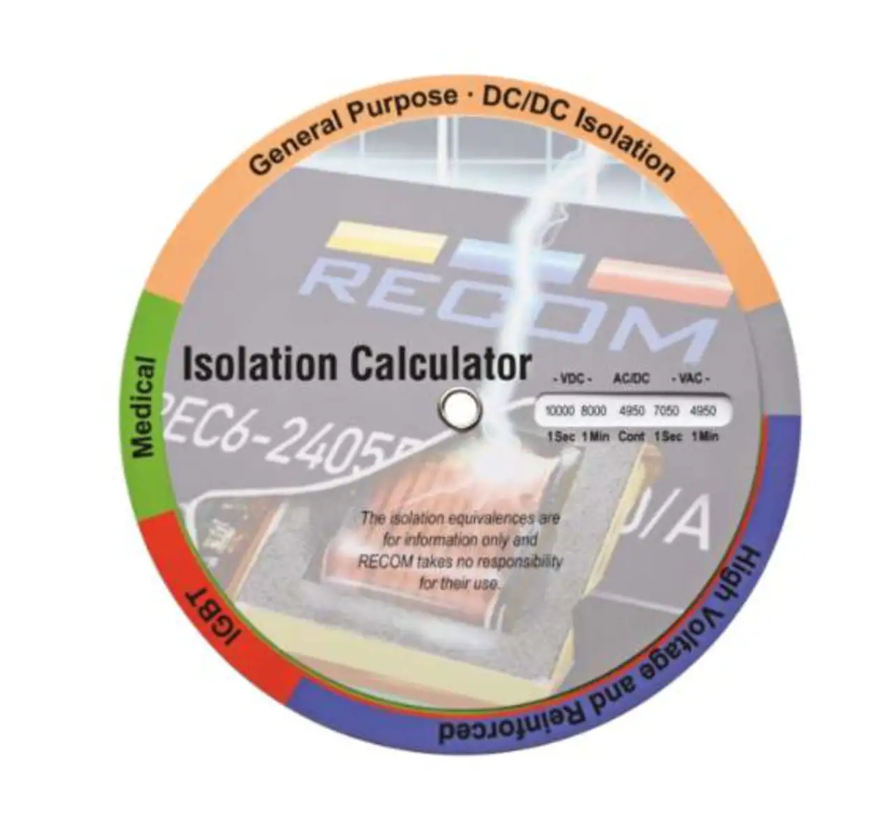 Um Anwendern einen besseren Überblick zu verschaffen, stellt Recom mit dem »ISO-Calc« ein kostenloses Tool zur Verfügung (Abb. 2). Auf der »schlauen Scheibe« sind zu jeder Spezifikation die relevanten Vergleichswerte abzulesen. Der ISO-Calc lässt sich kostenlos über info@recom-electronic.com anfordern oder auf der Website www.recom-electronic.com ausprobieren.
